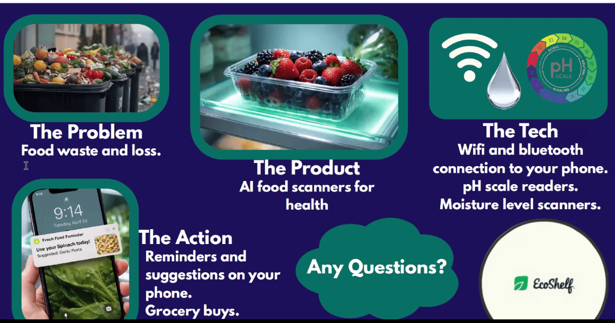 This image provided by Pee Dee Idea Challenge was the slide for Eco Shelf, the pitch that took second place. Eco Shelf, by Coastal Carolina students Michaela Nemerow and Devin McGowan, is an idea for a smart device that tracks freshness of foods in your refrigerator. (PDB2B image by Pee Dee Idea Challenge)